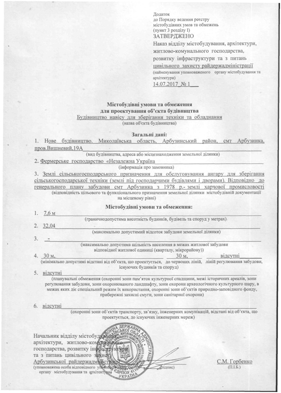 Містобудівні умови - Будівництво зерноочисного комплексу в с. Семенівка, вул. Мостова. 1-д. в межах Благодатненської сільської ради, Арбузинського району Формат: PDF | Добавлен: 23/08/2020 17:03:23 |