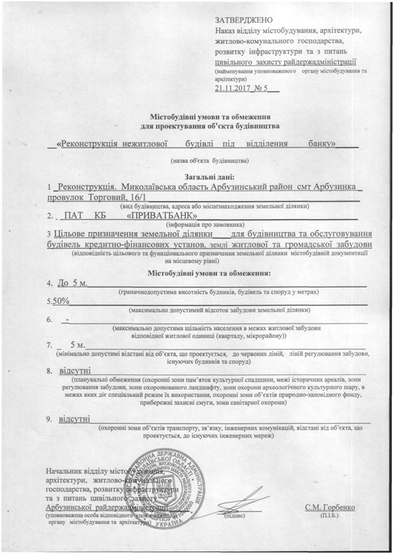 Містобудівні умови - будівництво туалету на території Арбузинської ЦРЛ Формат: PDF | Добавлен: 23/08/2020 17:03:33 |